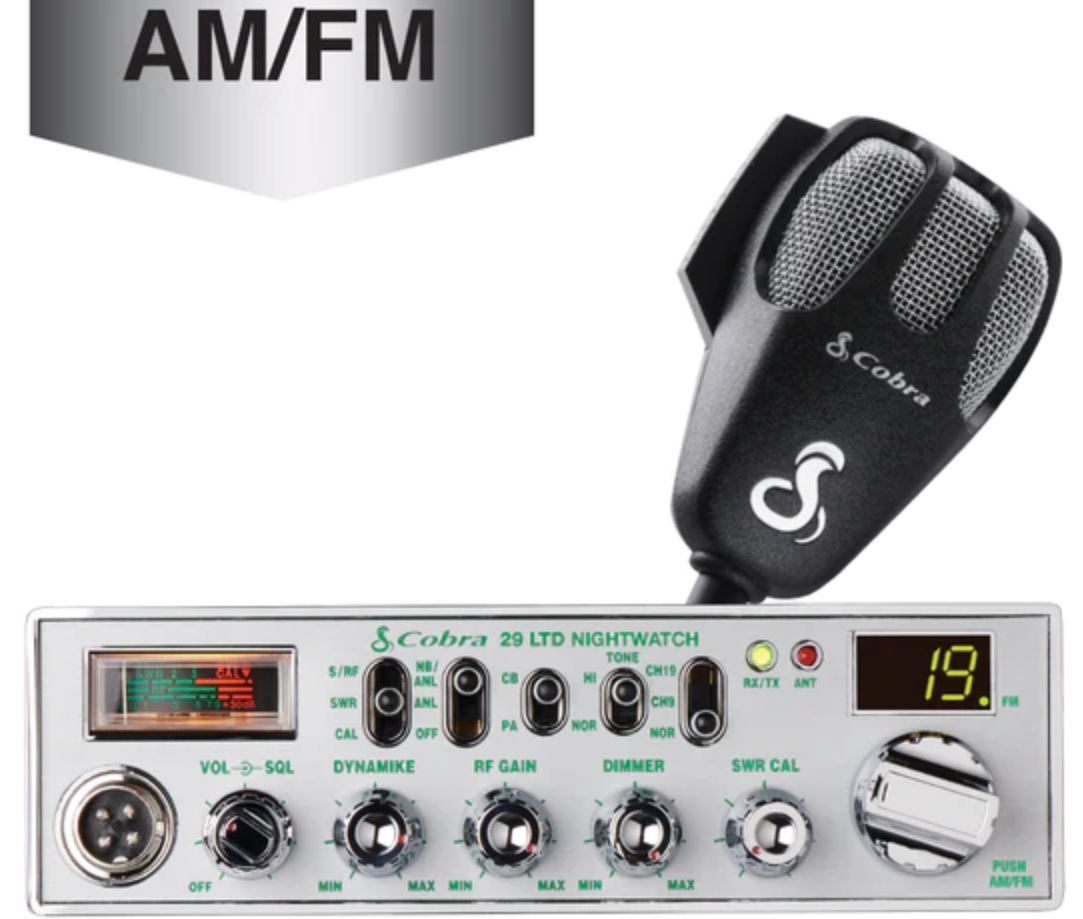 Deluxe AM/FM 40 channel trucker’s CB radio with illuminated face for easy night viewing. Features dual AM/FM mode for superior sound clarity, adjustable backlight dim control, S/SWR/RF meter, SWR calibration control, NB/ANL, RF & Mic gain, PA, Bright/Dim & instant channel 9/19, RX/TX indicators, antenna warning light, 4 pin front mount heavy duty black dynamic microphone with chrome mesh grill and 9' cord, tactile controls and rear speaker jack.*****
